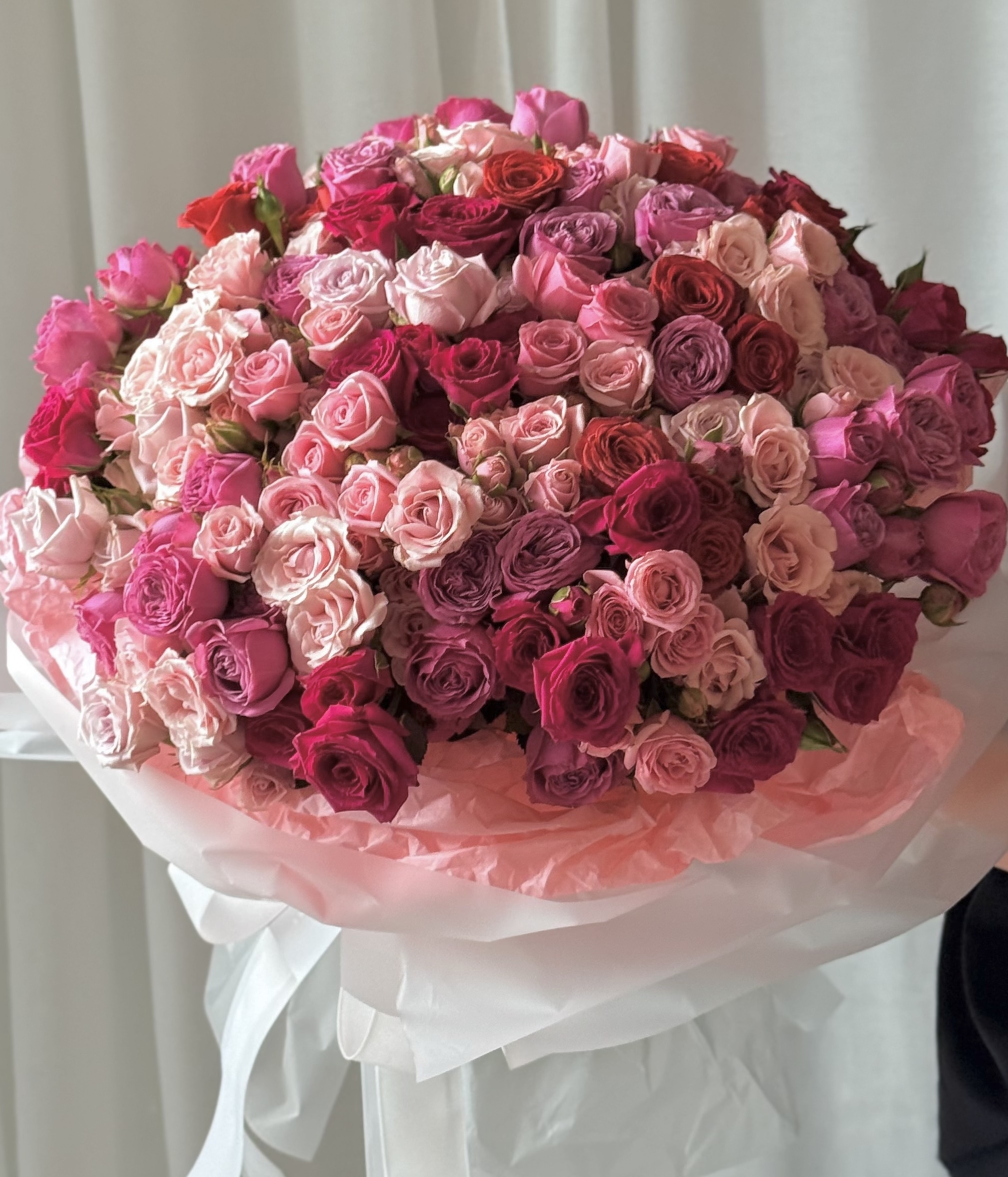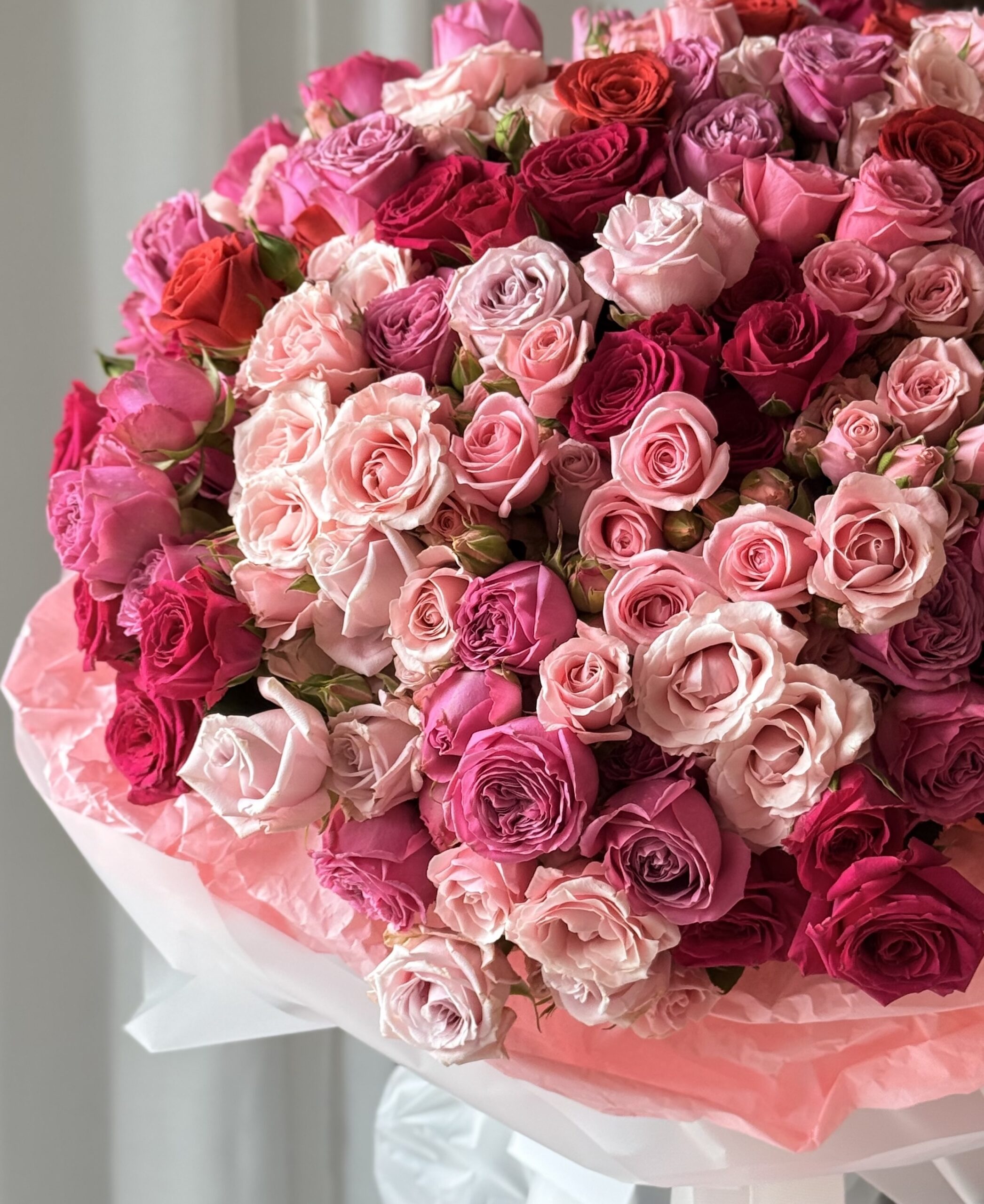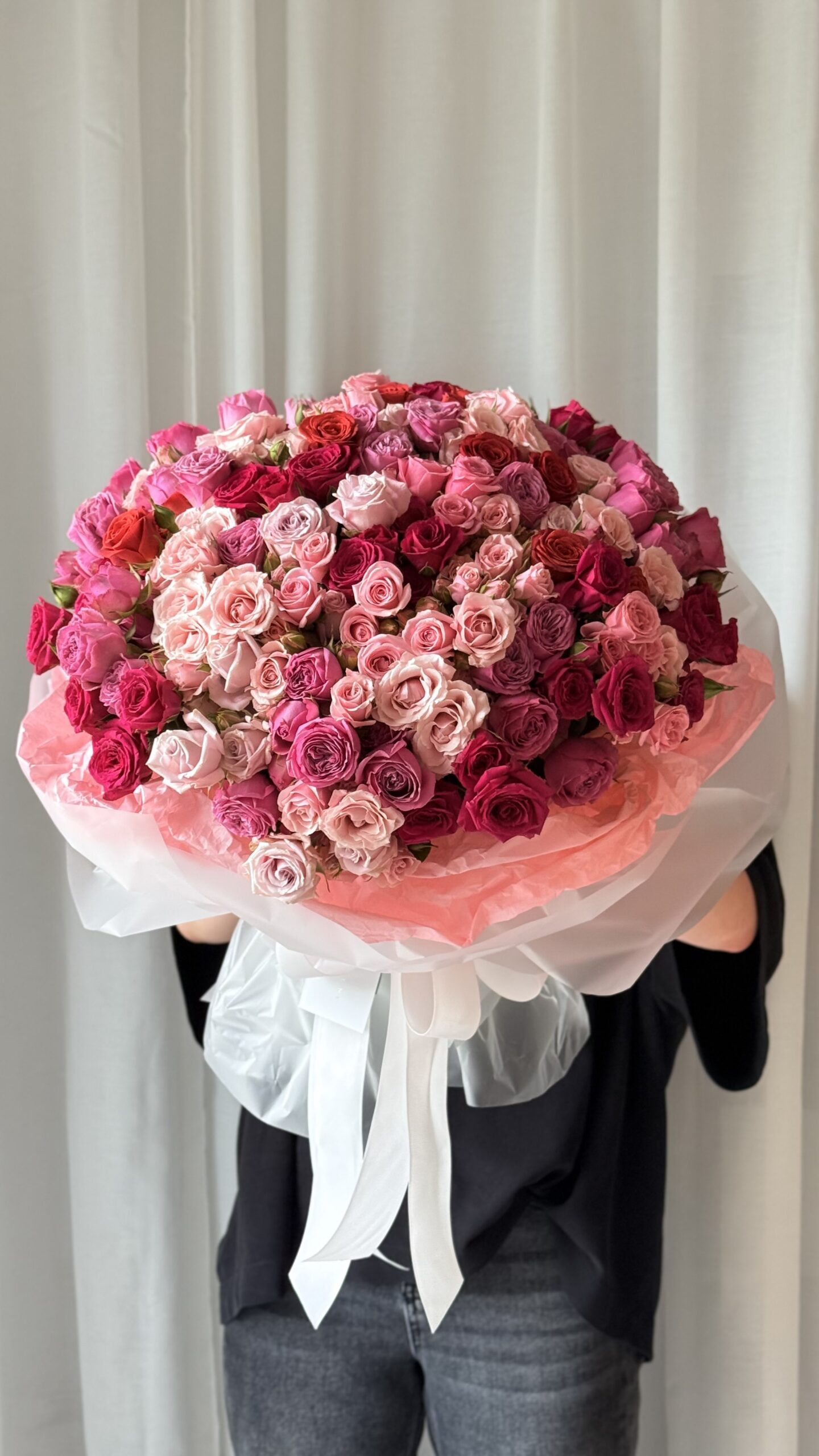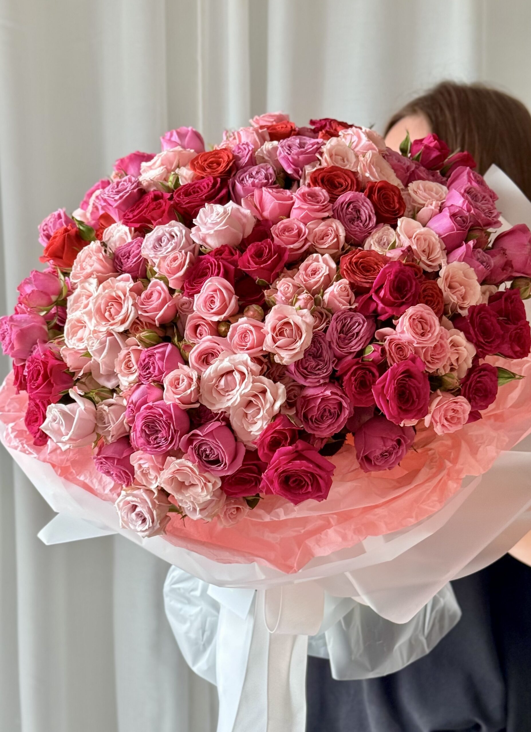 Bukiet na zdjęciu jest skomponowany z 51 róż galazkowych