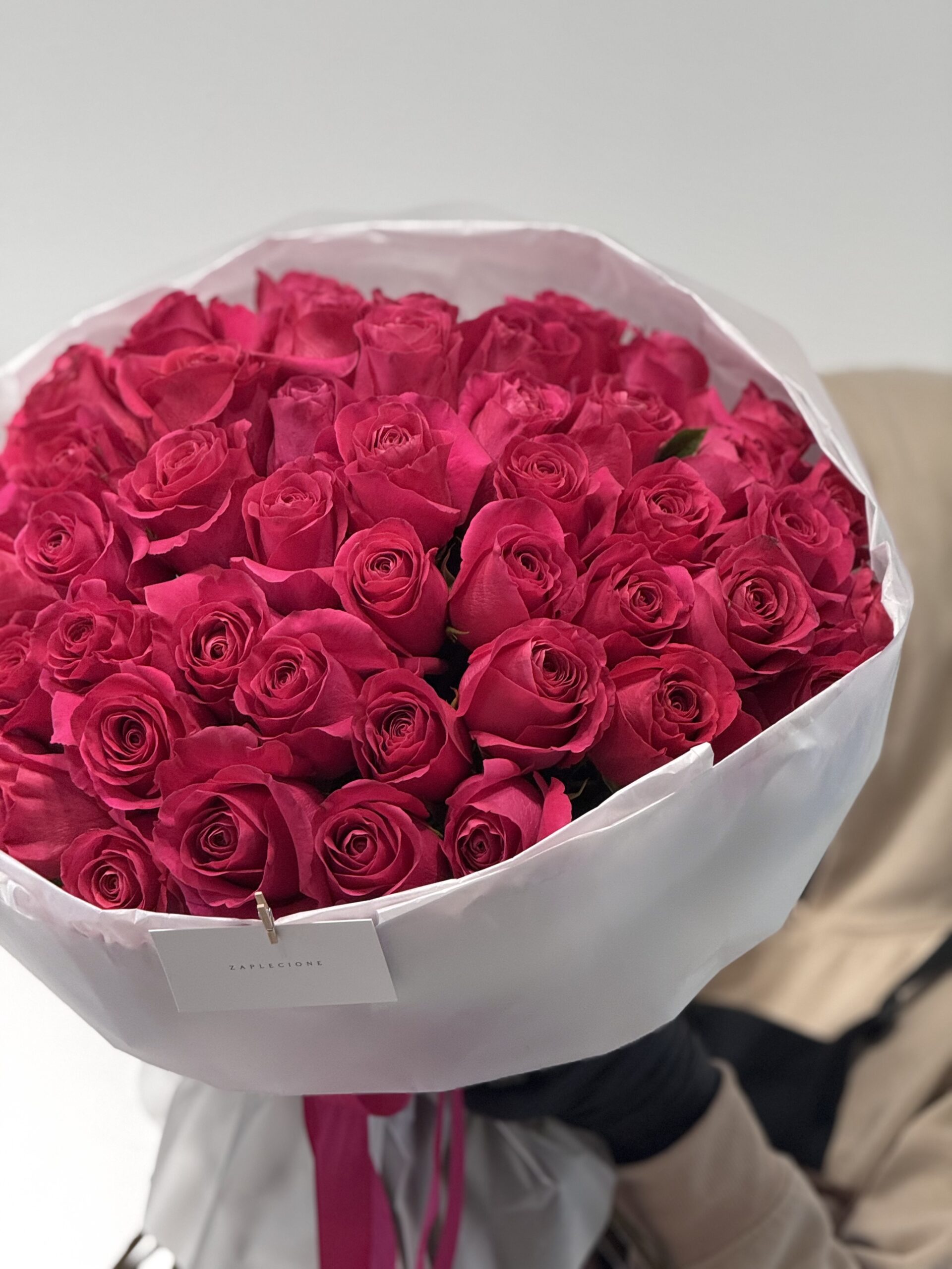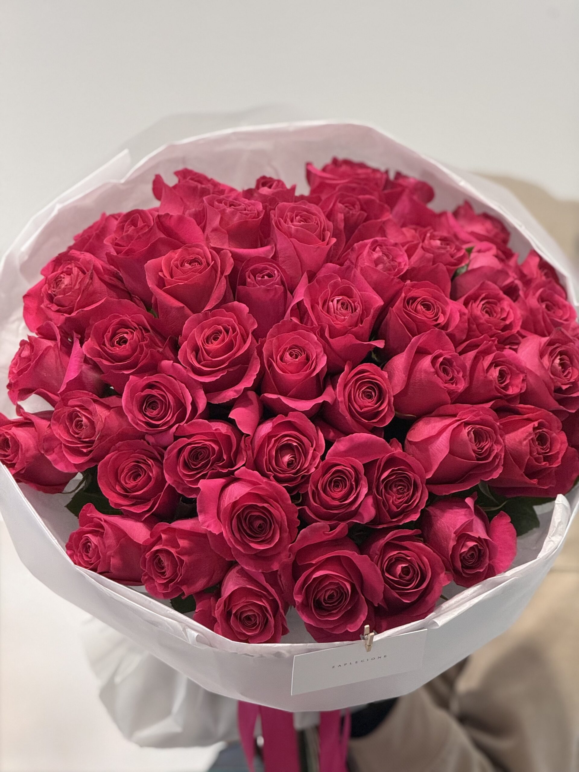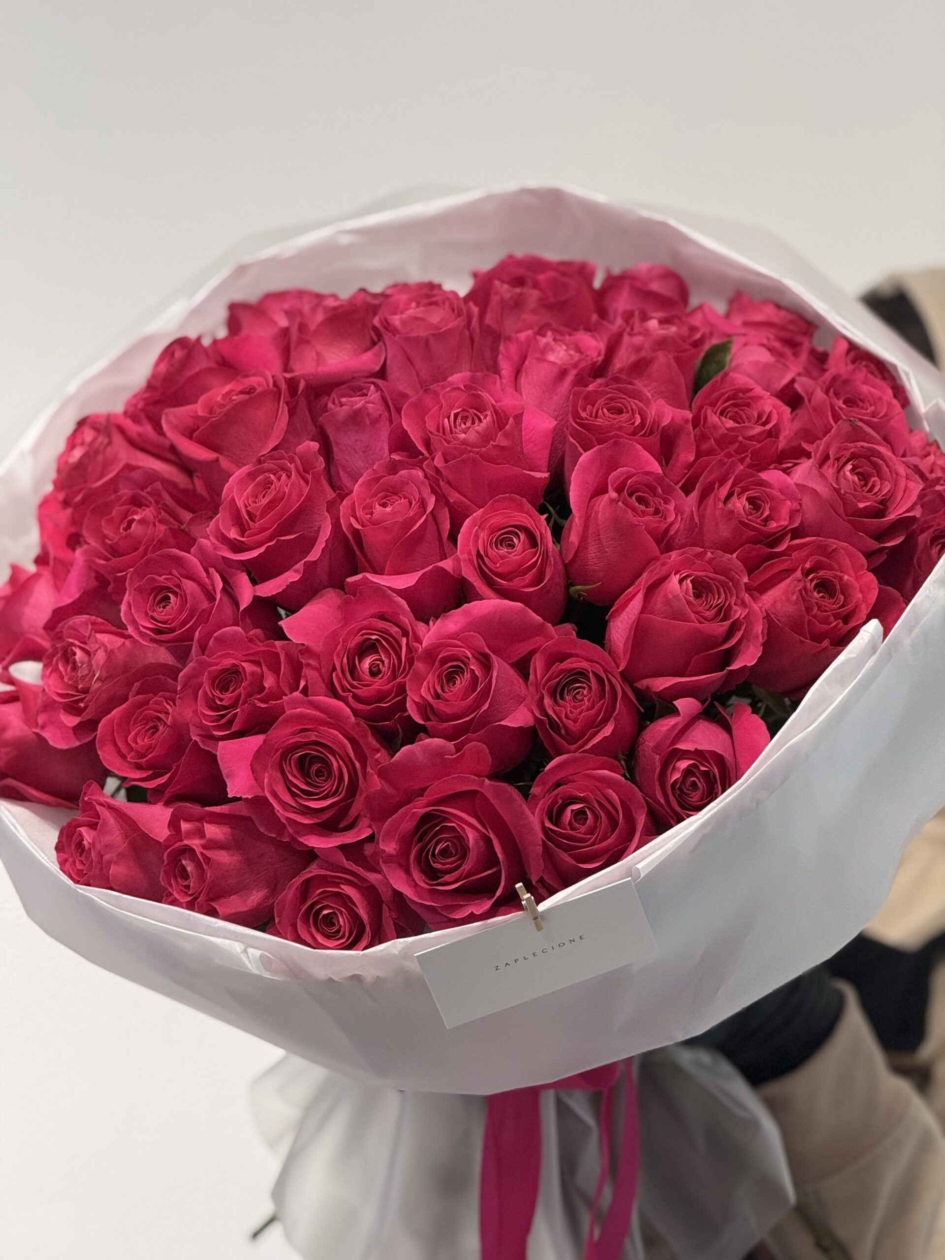 • Elegancki, luksusowy bukiet w intensywnym różowym kolorze.